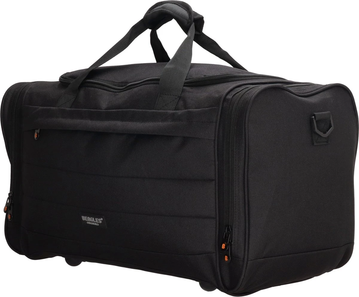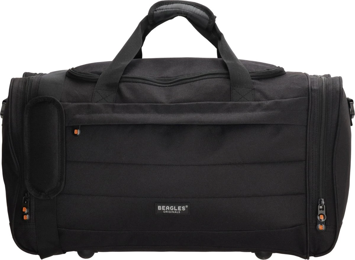 Handbagage formaat reistas van het merk Beagles Originals. Ritsvak voorop en groot hoofdvak met ritssluiting in U-vorm waardoor de tas mooi opent en je goed je spullen erin kunt opbergen. Op beide zijkanten zit een ritsvak, handig om kleinere reisaccessoires in op te bergen. De twee handvatten zijn samen te binden middels een lip met klittenband. Met de afneembare, verstelbare schouderband kun je deze tas ook over de schouder dragen.