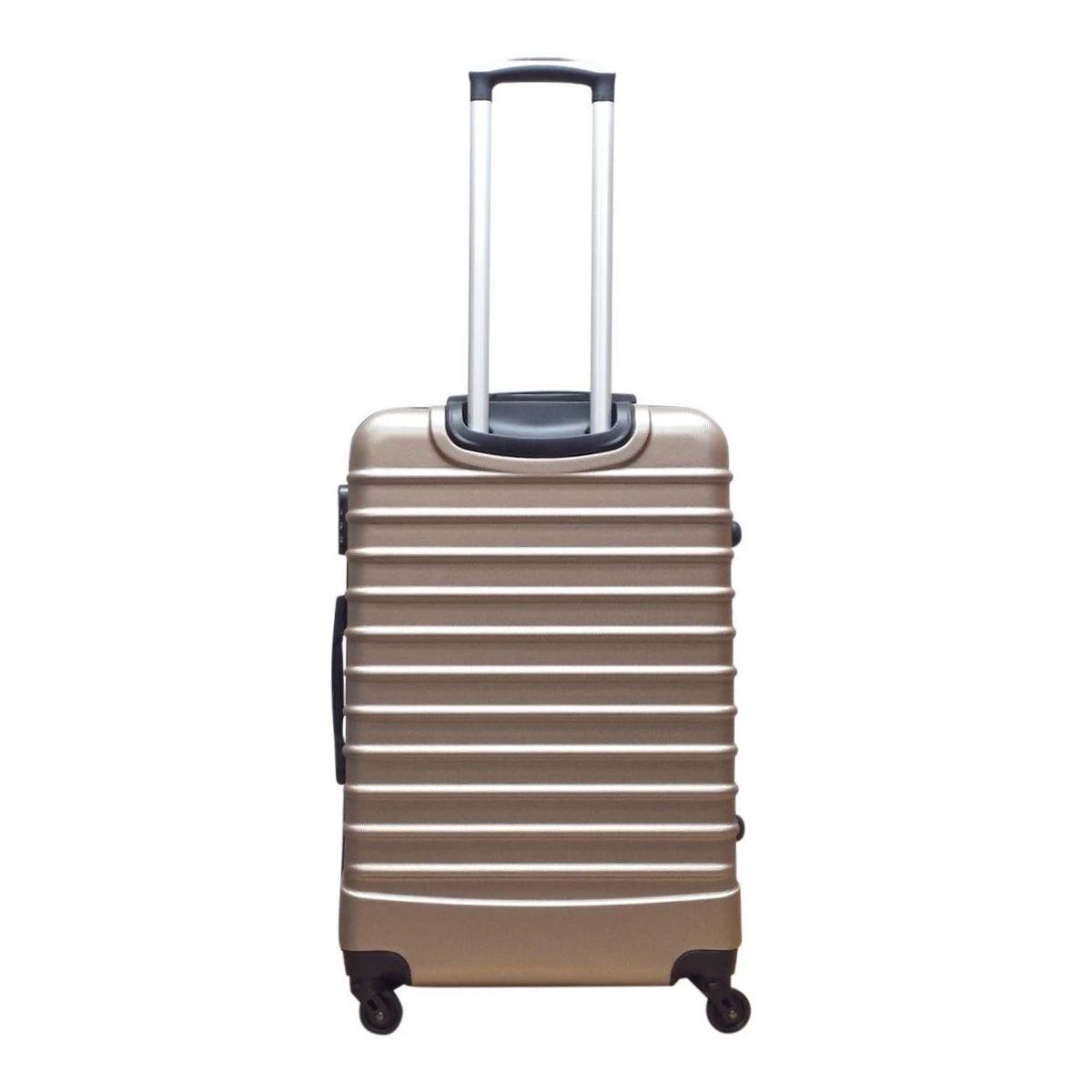 Mooie 2-delige hardschalen kofferset bestaande uit een koffer maat L en een koffer maat XS. Koffers zijn binnenin gevoerd, voorzien van spanbanden en een tussenschot met rits. Comfortabel door 4-wiel systeem. Beide koffers zijn voorzien van een vast cijferslot op de zijkant van de koffer.
