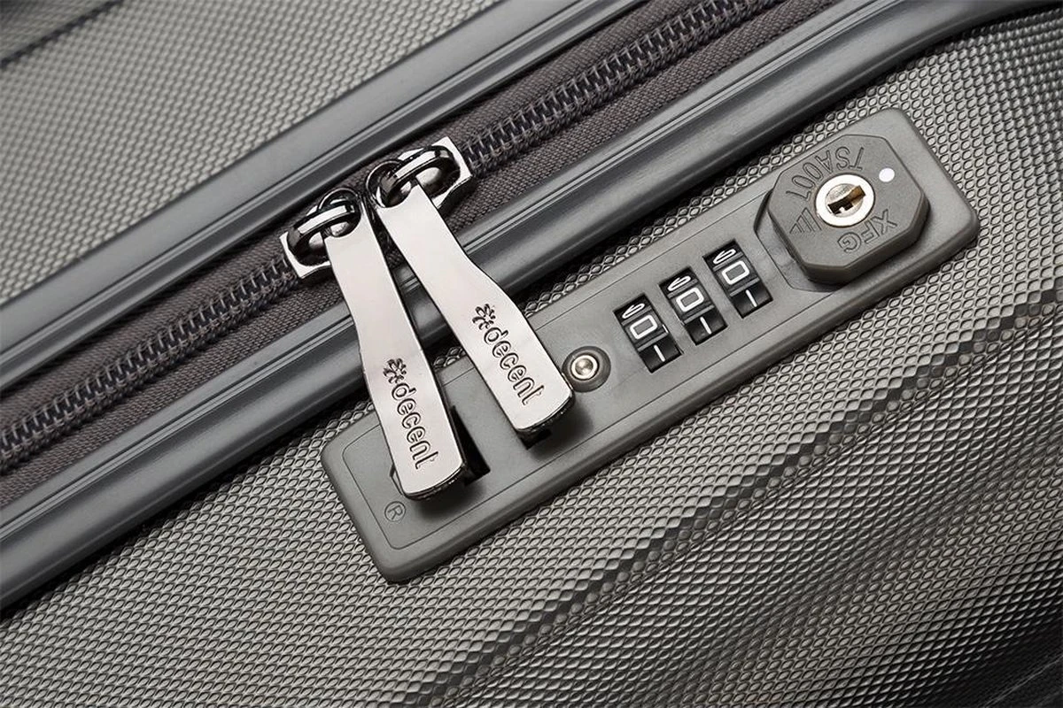 Belangrijk: op de detailfoto van het slot van deze koffer is een dubbele rits te zien. Dit is echter onjuist want deze koffer heeft slechts één rits. De grotere maten van deze koffer (maten M en L) hebben wel een tweede rits ofwel zijn expandable. De Maxi-Air handbagage koffers zijn dus niet expandable.
