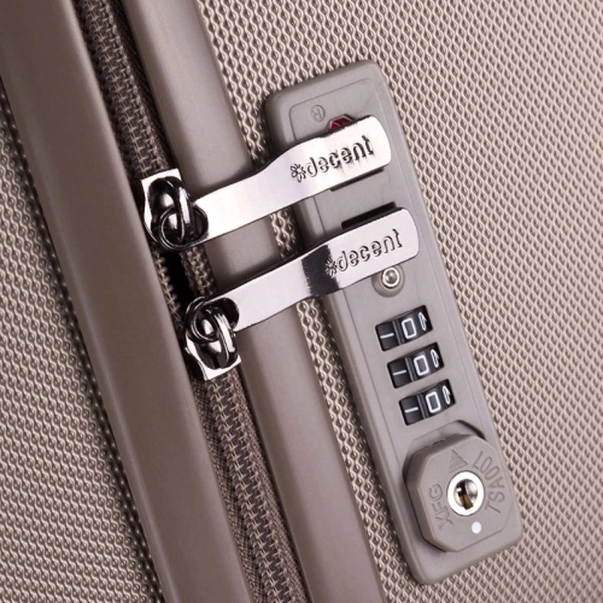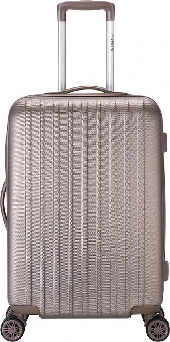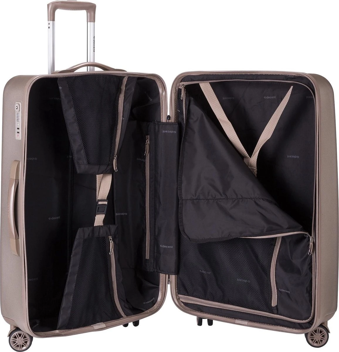 Middelgrote hardschalen ABS koffer uit de Tranporto-One serie van Decent. Koffer is voorzien van een rits rondom die op slot te zetten is middels een vast cijferslot op de zijkant van de koffer. Binnenin gevoerd en voorzien van meerdere insteek- en ritsvakken voor het overzichtelijk opbergen van uw bagage.