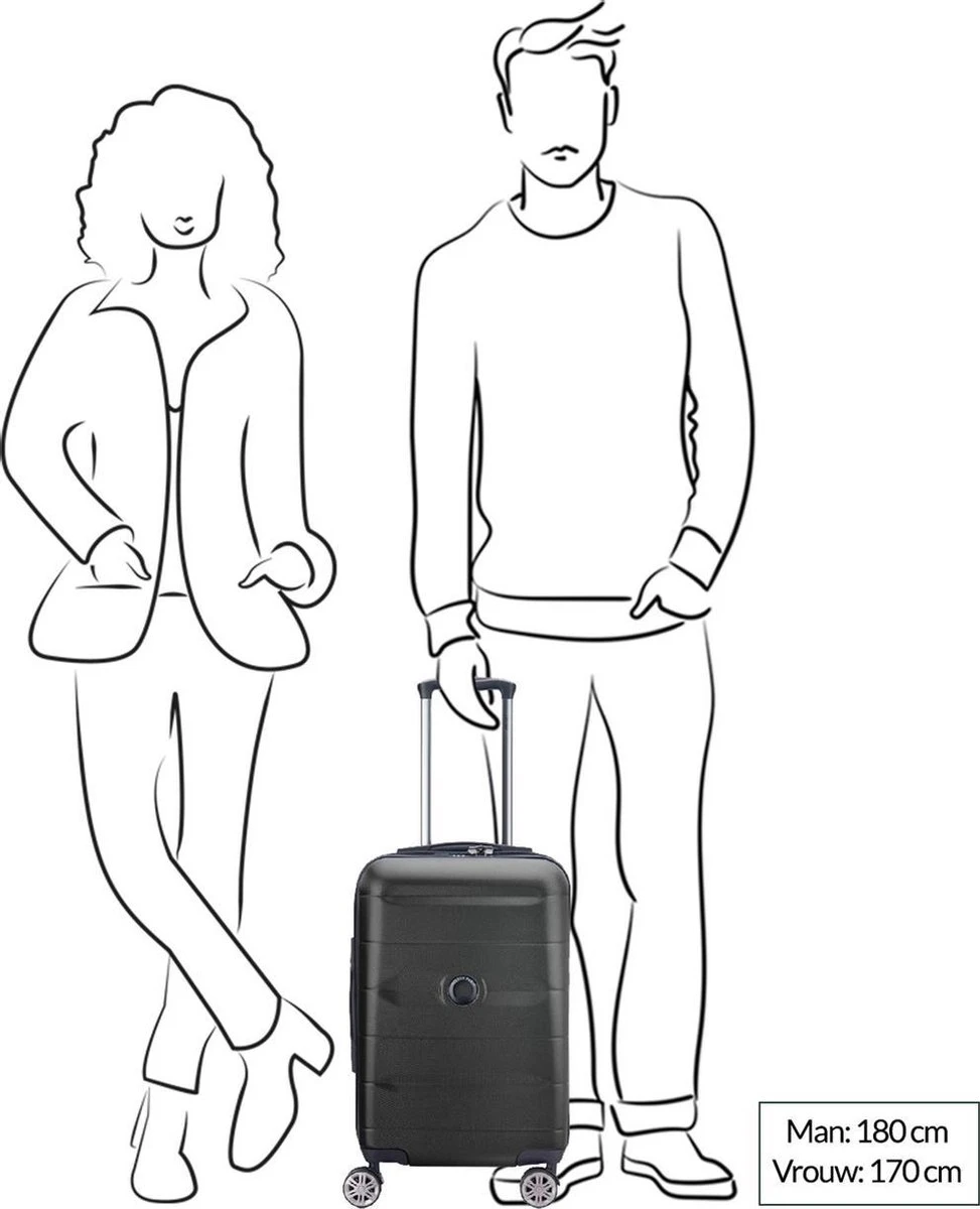 De koffers uit de Comete Plus serie zijn vervaardigd uit het materiaal ABS met een toplaag van polycarbonaat. Met 4 dubbele spinner wielen is deze koffer wendbaar en tegelijkertijd ook erg stil. Het interieur is optimaal ingedeeld voor maximaal inpakvolume. Verder is het interieur afgewerkt met pakbanden, een extra rits vakje, en een compartiment welke volledig is af te sluiten. Met een literinhoud van 35 liter is deze koffer ideaal voor een weekendtrip. Deze koffer houdt je spullen veilig met DELSEY ‘s gepatenteerde Zip SECURITECH®, die 3 keer veiliger is dan een standaard rits.