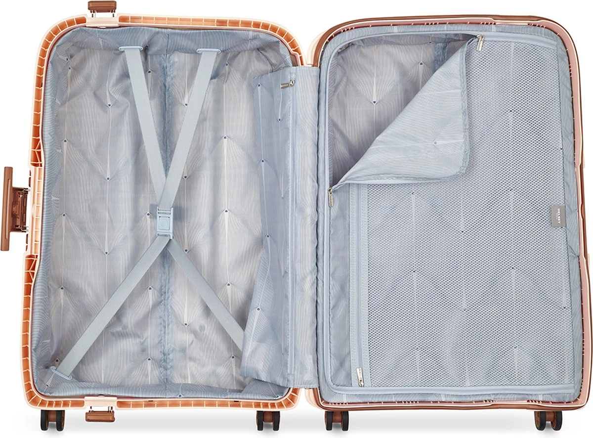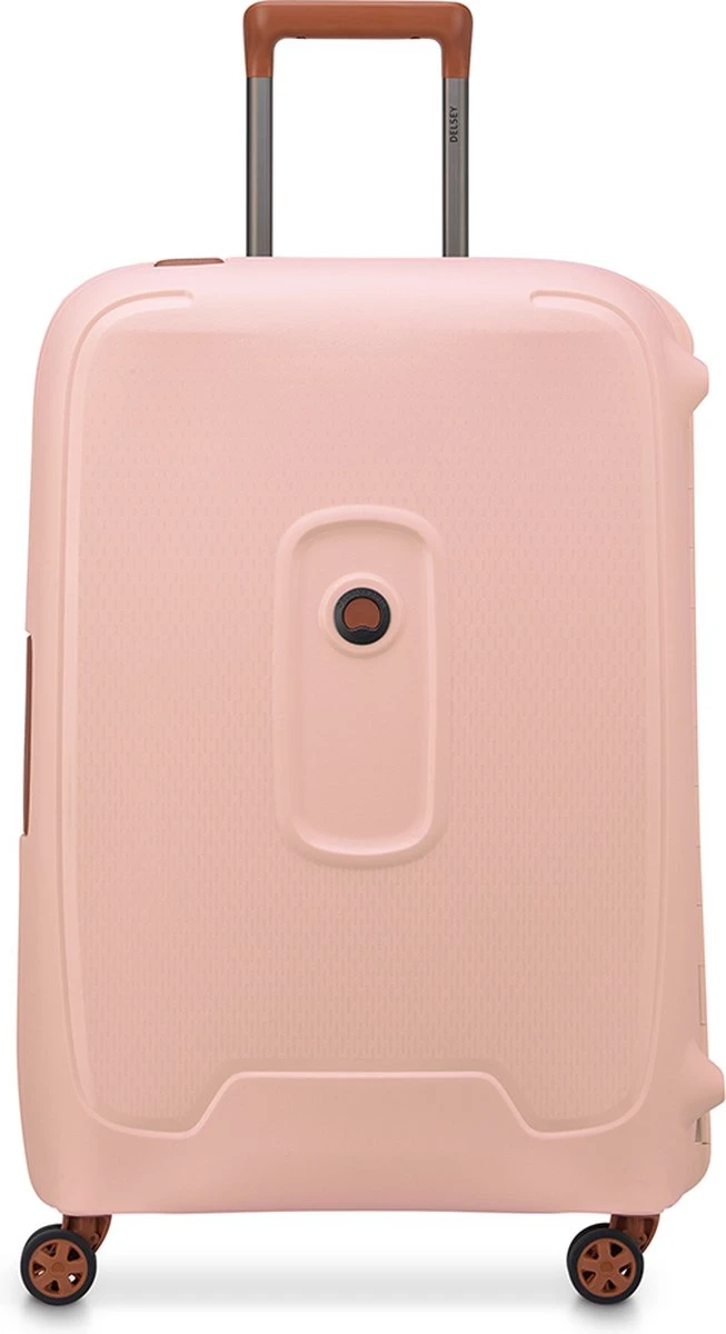 Middenmaat spinner uit de vernieuwde Moncey serie van Delsey. De Delsey Moncey koffer biedt alles wat een moderne koffer nodig heeft. De schaal is gemaakt van polypropyleen en is naast zeer sterk ook relatief licht. Voorzien van een veilig driepuntssluiting én een TSA-combinatieslot voor zorgeloos reizen van en naar de VS. Het interieur is volledig gevoerd en praktisch ingericht met een tussenschot en inpakriemen. Zeer gemakkelijk mee te nemen met 4 stille wielen en verstelbare trekstang. De schaal is zeer waterafstotend en door een speciale strip is hij waterproof.