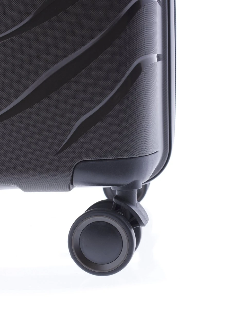 Mooie grote hardschalen ABS koffer gemaakt van recyclebaar polypropyleen. Koffer is voorzien van een ritssluiting rondom en een extra expandable rits waarmee de koffer qua volume te vergroten is van 99 naar 105 liter. Binnenin gevoerd en voorzien van tussenschot met ritssluiting, ritsvakje en spanbanden. Koffer is op slot te zetten middels een vast cijferslot op de zijkant van de koffer. Handvat op boven- en zijkant en voorzien van comfortabel 4-wiel systeem.