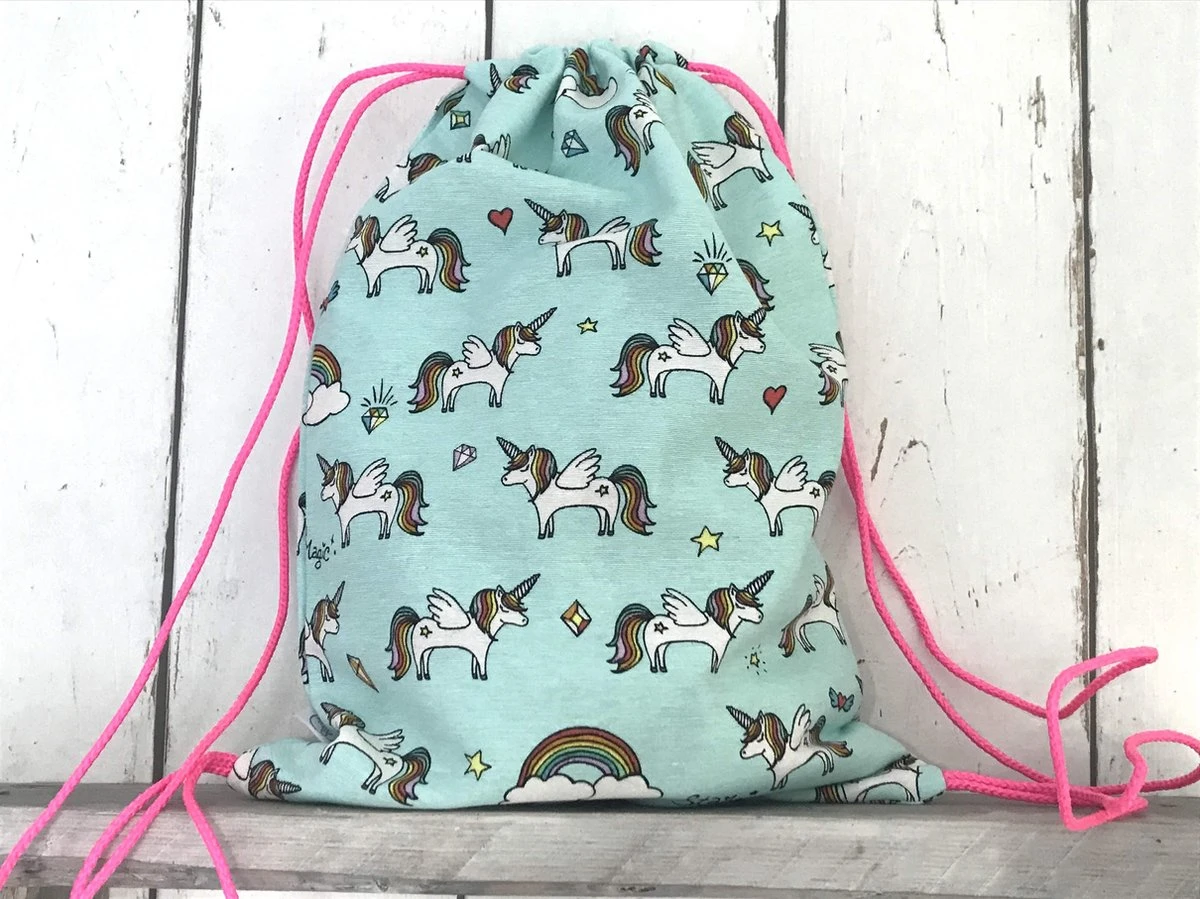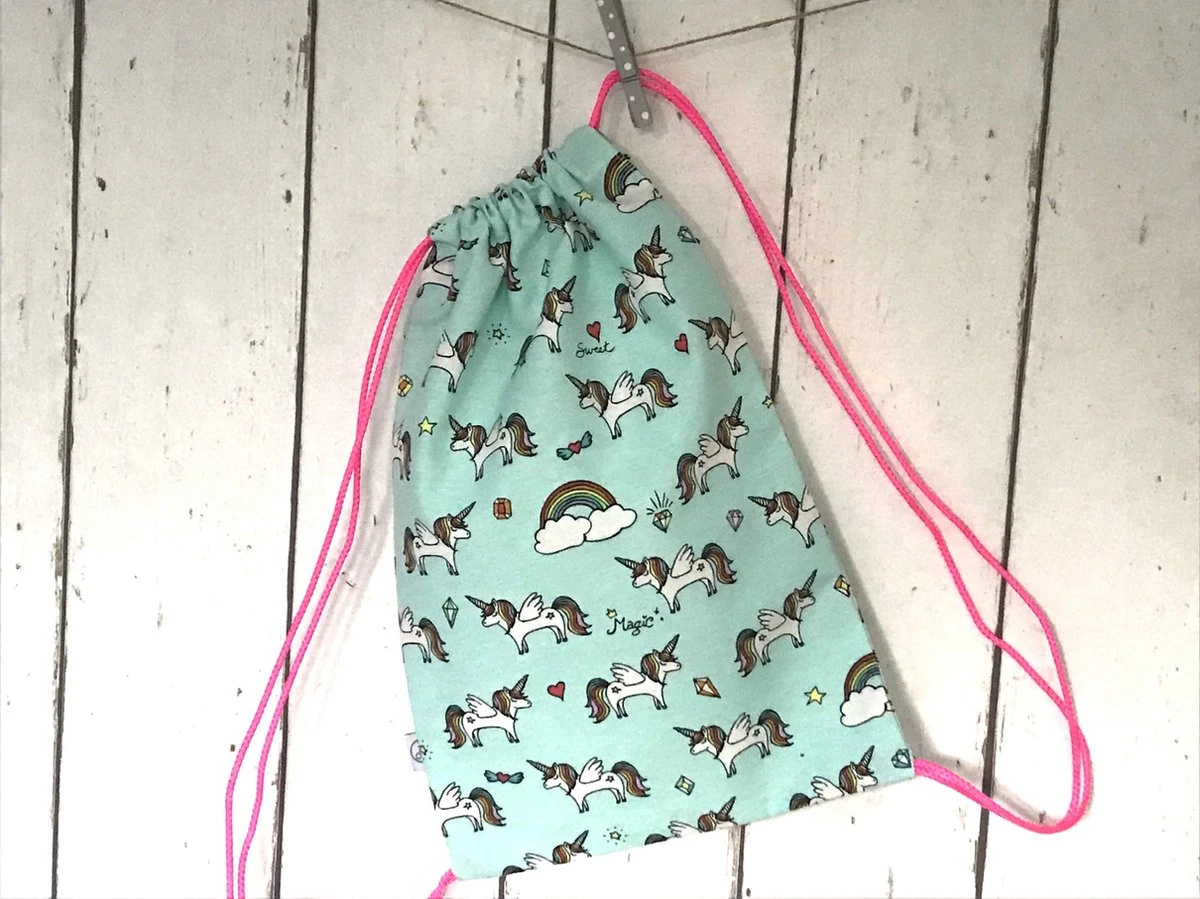 Super schattig rugtasje met unicorns / eenhoorns voor meiden. Dit tasje met rijgkoord is ideaal om te gebruiken als gymtas of zwemtas.