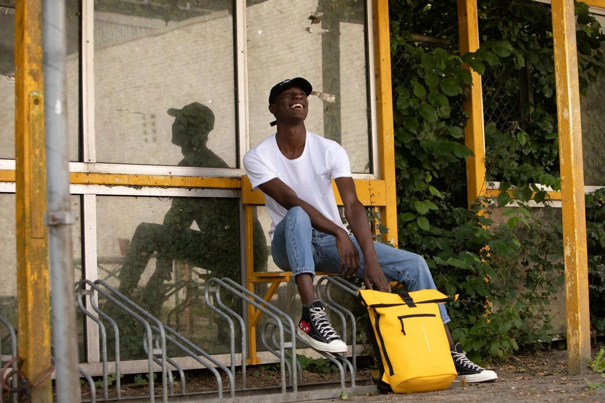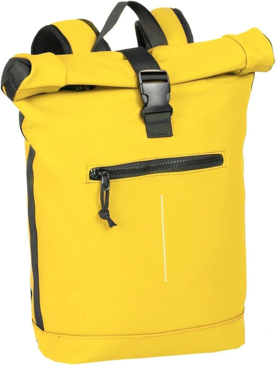 Stoere waterafstotende laptop rugzak uit de Mart serie van New Rebels. De rugzak is gemaakt van tarpaulin. Dit waterafstotende materiaal zorgt er voor dat de tas tegen een stootje kan en jouw eigendommen droog blijven tijdens verschillende weersomstandigheden. De reflectiestreep op de voorkant zorgt er voor dat je goed zichtbaar bent tijdens donkere dagen. Het ruime hoofdvak is afsluitbaar middels een ritssluiting en TT (schuif/klik-sluiting) en is oprolbaar ofwel qua volume wat te vergroten danwel te verkleinen. Binnenin zit een extra ritsvakje en een gewatteerd laptopvak van 37 x 27 x 4 cm geschikt voor een 15,5 inch laptop. Op de voorzijde van de tas zit een ritsvak waarin je spullen kwijt kunt die je snel bij de hand wilt hebben. Het rugpand en de verstelbare schouderbanden zijn gewatteerd voor optimaal draagcomfort. Met de lus aan de bovenkant kan de tas makkelijk opgepakt worden of in de hand gedragen worden.