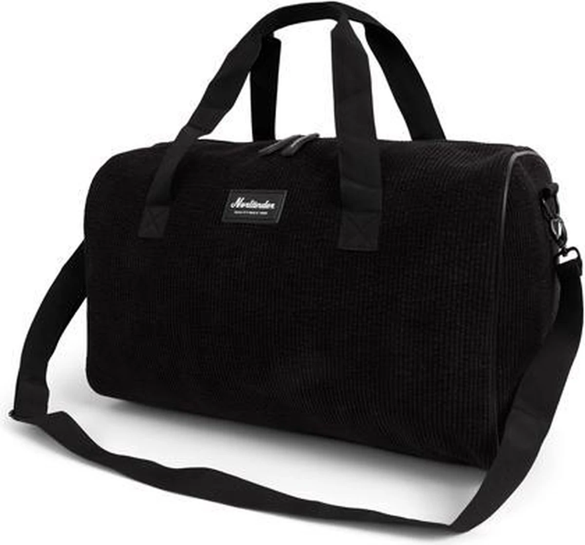 De Norländer ribbel weekendtas zwart is een stoere en tegelijkertijd sportieve weekendtas die is te herkennen aan het opvallende corduroy ribbelpatroon. Het hoofdcompartiment is afsluitbaar met een rits en hier bevindt zich ook een afsluitbaar opbergvakje voor kleine attributen. Aan de bovenzijde bevinden zich ook twee draaghengsels die je aan elkaar kunt bevestigen door middel van een klittenbandsluiting. Tevens is de schouderband te demonteren en verstelbaar.