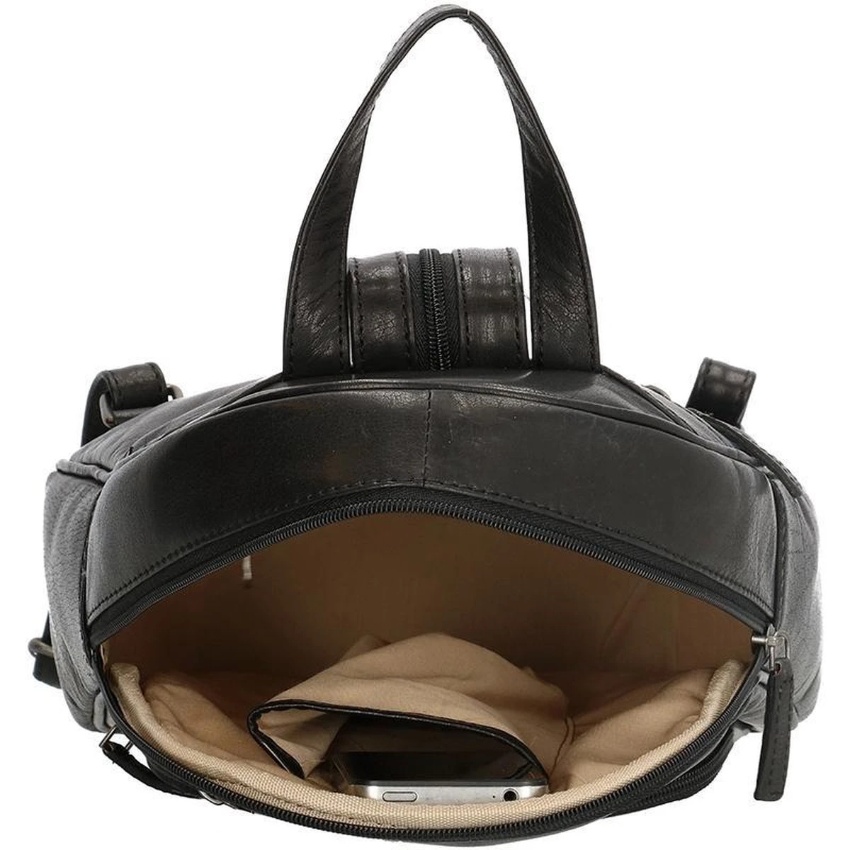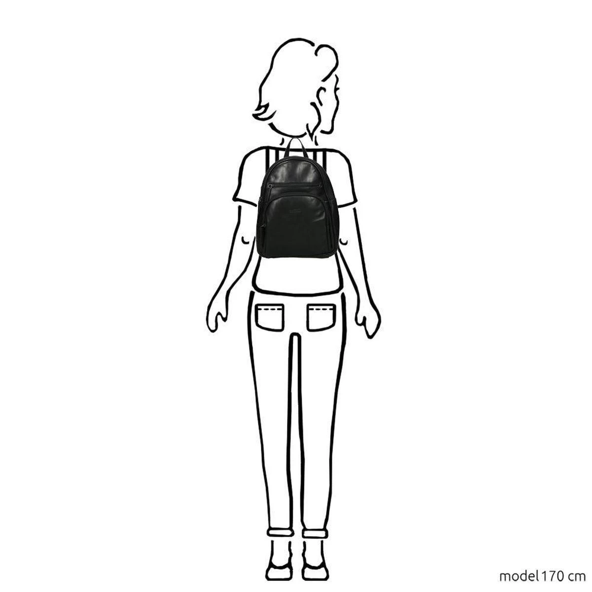 Deze Old West leren dames rugzak San Antonio is gemaakt van glad leer met een natuurlijke uitstraling en beschikt over voldoende vakken en biedt zo voldoende ruimte om allerlei spullen eenvoudig mee te nemen. De schouderbanden zijn, indien gewenst, ook met een rits aan elkaar te doen, zodat de tas over één schouder gedragen kan worden.