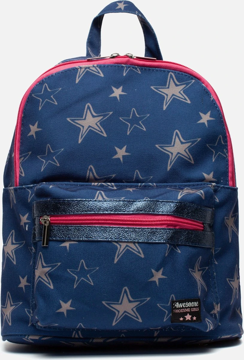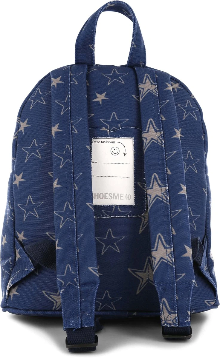 We zien sterretjes! Deze toffe Shoesme rugzak, uitgevoerd in blauw canvas, heeft over heel de tas allerlei sterretjes, in een lichtgrijze kleur. Leuke tas voor op het schoolplein!