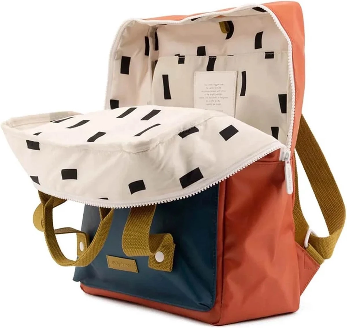 YES! Deze rugzak is gemaakt van gerecyclede PET- flessen! Aan de voorkant vind je een extra vak. De binnenkant is waterbestendig en heeft een hagelslag patroon. De ritsen zijn gemaakt door YKK en de schouder banden zijn in maat verstelbaar. In de binnenkant vind je een flessenhouder en een vak over de volledige hoogte wat sluit met elastiek. Op het naamkaartje kan je je naam schrijven.